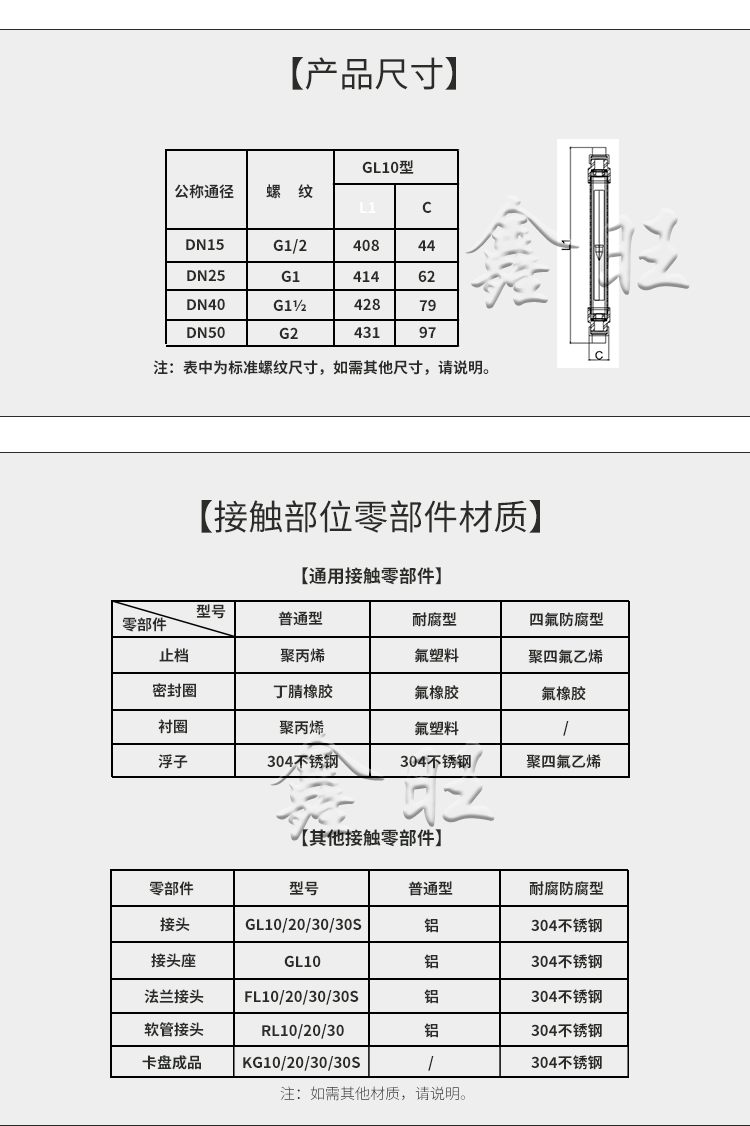 GL/RL/FL10、20、30型玻璃轉子流量計的連接有管螺紋(GL10、20、30型)、軟管(RL10、20、30型);法蘭(FL10、20、30型)三種方式。其耐壓和耐溫均高于原有相同通徑的LZB/LZJ系列玻璃轉子流量 計產品;分普通型(測量一般無腐蝕流體)和耐腐型(測 量的腐蝕性流體)兩種。產品體積小、結構輕巧,外形 美觀,維修方便、安全可靠,安裝簡單。FL10、20、30型 法蘭可轉動,與現場管道法蘭孔吻合。