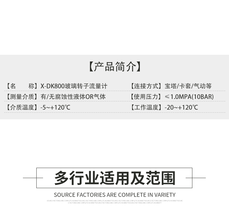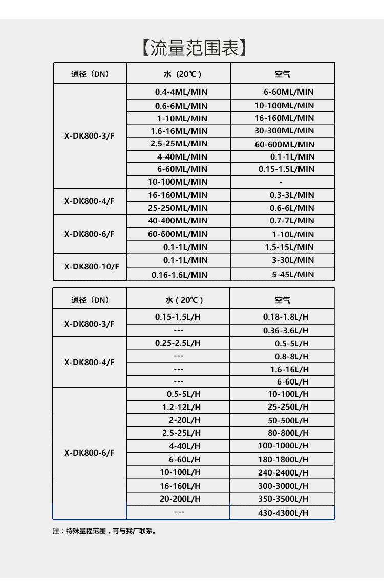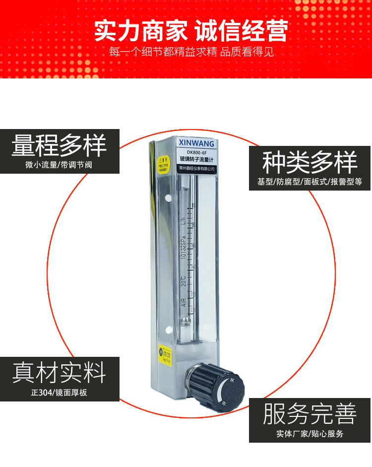 8.       一般流體的測量選用DK800-()型,有腐蝕性流體的測量選用DK800-()F型玻璃轉子流量計。
