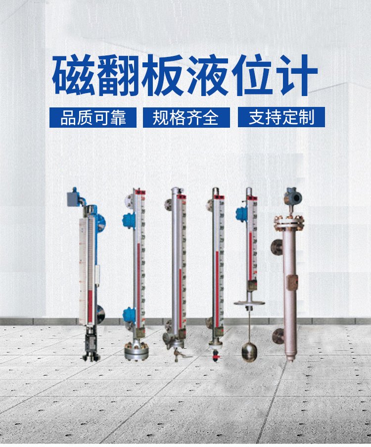 根據浮力原理,浮子在測量管內隨液位的升降而上、下移動,浮子內的永久磁鋼通過耦合作用,驅動紅、白色翻柱翻轉180°,液位上升時翻柱由白色轉為紅色,下降時由紅色轉為白色,從而實現液位指示。