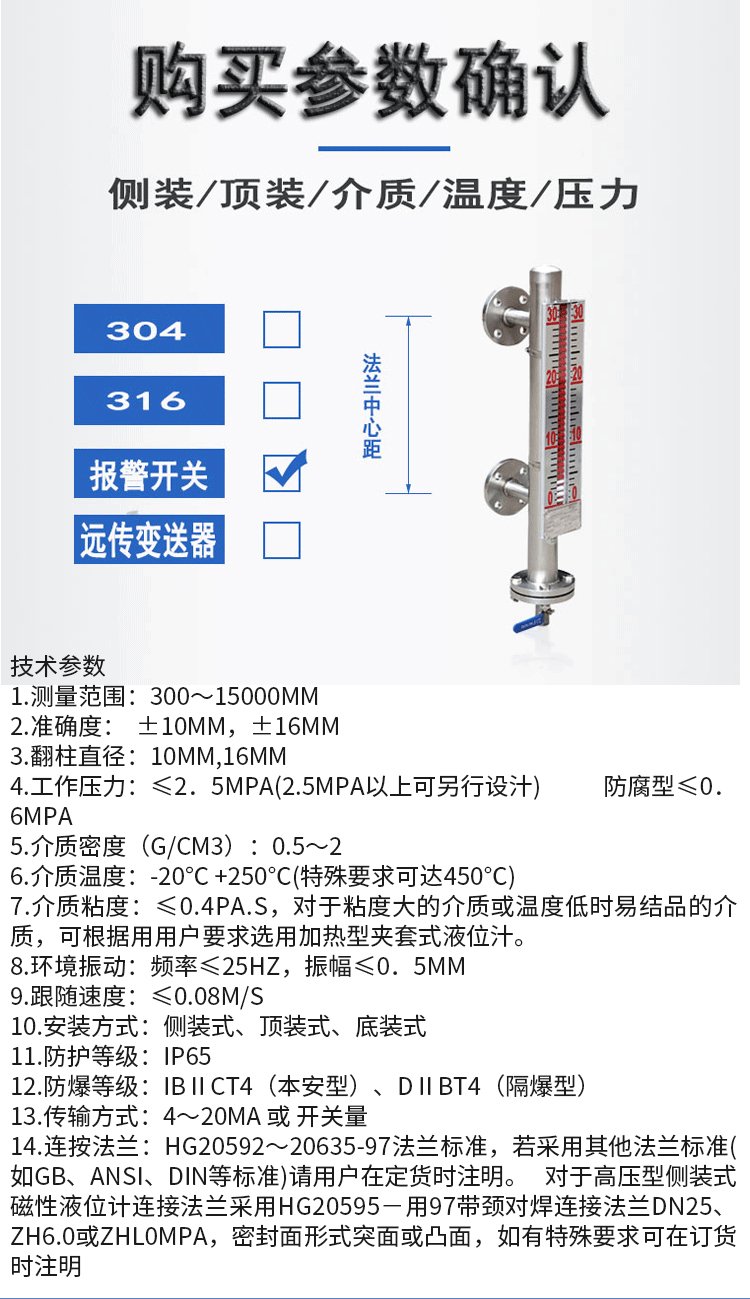 防腐磁翻板液位計(jì)技術(shù)參數(shù)