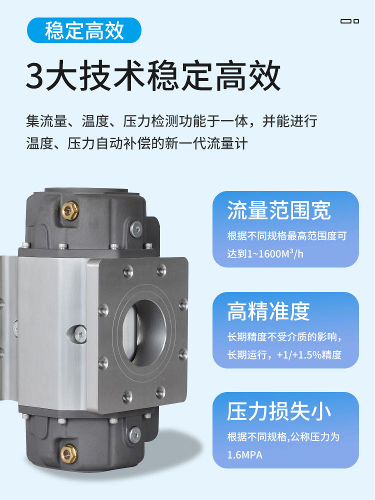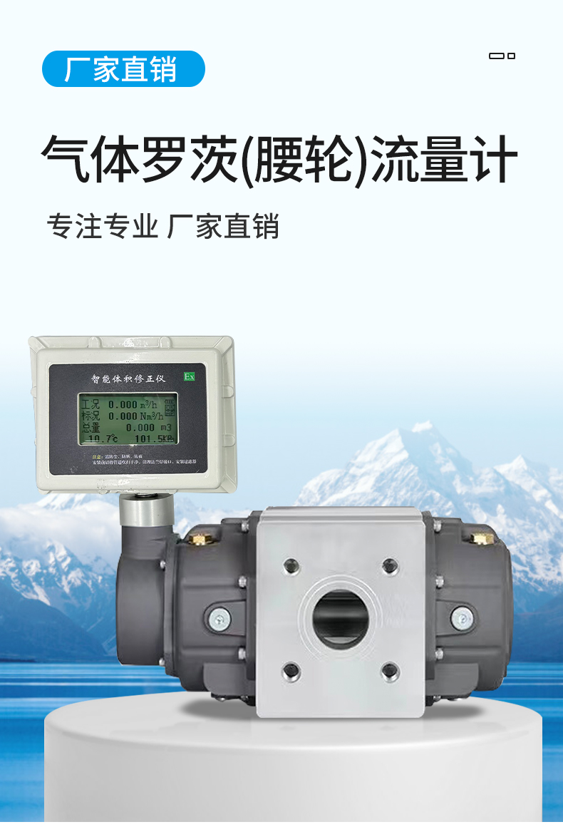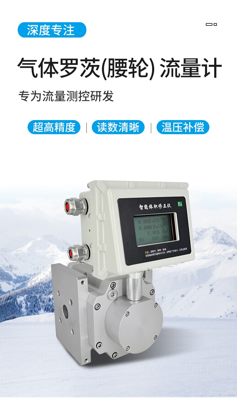 LLQ-200氣體羅茨腰輪流量計是一種廣泛應用于工業氣體計量領域的高精度容積式流量儀表,尤其適合天然氣、煤氣、壓縮空氣等氣體的貿易結算和過程控制。以下從原理、優勢、應用場景、選型要點及技術參數等角度展開分析: 一、核心原理與結構設計   1. 工作原理     基于容積式測量原理,通過兩個相互嚙合的“8字形”羅茨轉子在氣體推動下旋轉,每轉一周排出固定體積的氣體。轉子的轉數與氣體流量成正比,通過傳感器檢測旋轉頻率即可計算累計流量和瞬時流量。   2. 核心結構     - 轉子組件:高精度加工的合金鋼或鋁制轉子,表面硬化處理以降低磨損。     - 計量腔體:嚴格密封的腔體設計,確保無泄漏。     - 溫度/壓力補償模塊(可選):集成溫壓傳感器,自動修正工況體積至標況體積(如Nm3)。   二、顯著優勢與適用場景   1. 核心優勢     - 高精度:典型精度±1.0%,貿易級儀表可達±0.5%。     - 寬量程比:通常1:10~1:30,適應流量波動大的場景。     - 低始動流量:可檢測微小流量(如0.1m3/h),適合低流速氣體計量。     - 抗震性強:無電子直觸部件,抗管道振動性能優于渦街流量計。   2. 典型應用行業     - 能源領域:天然氣門站計量、LNG加氣站、城市燃氣輸配。     - 工業流程:化工廠反應氣體配比、鋼鐵廠高爐煤氣回收。     - 環保監測:沼氣發電計量、碳排放氣體流量統計。   三、選型關鍵參數與注意事項   1. 介質特性適配     - 清潔度要求:若氣體含粉塵或液滴,需加裝過濾器(如天然氣中的雜質過濾)。     - 腐蝕性氣體:可選不銹鋼或特殊涂層轉子(如H?S含量高的煤氣)。   2. 流量范圍匹配     | 口徑(DN) | 最小流量(m3/h) | 最大流量(m3/h) |     |------------|------------------|------------------|     | 50         | 5                | 250              |     | 100        | 20               | 1000             |     | 200        | 100              | 4000             |   3. 壓力與溫度限制     - 標準耐壓:1.6MPa(可定制至4.0MPa)。     - 溫度范圍:-30℃~+80℃(高溫型可達+120℃)。   4. 附加功能選擇     - 智能通訊:支持Modbus、HART協議,兼容工業物聯網(IIoT)系統。     - 防爆認證:Ex dⅡCT6,用于化工、礦井等危險區域。   四、與渦街流量計的對比   | 對比項       | 羅茨流量計                | 渦街流量計                |   |------------------|-------------------------------|-------------------------------|   | 測量原理     | 容積式                        | 速度式(卡門渦街)            |   | 適用介質     | 中低流速、高粘度氣體          | 大流量、低粘度氣體/蒸汽       |   | 壓力損失     | 較高(需考慮管道壓降)        | 較低                          |   | 維護需求     | 定期潤滑轉子軸承              | 無活動部件,免維護            |   五、維護與校準建議   1. 周期性維護     - 每6個月檢查轉子磨損情況,清潔過濾器。     - 每2年對軸承進行潤滑(食品級潤滑脂)。   2. 校準要求     - 貿易結算用儀表需每年進行實流標定(如鐘罩式氣體流量標準裝置)。     - 現場校準可采用超聲波比對法,誤差超過±1.5%時需返廠調整。   總結   氣體羅茨流量計憑借其高精度、寬量程和強環境適應性,成為工業氣體計量的首選設備之一。在選型時需重點關注介質清潔度、流量范圍匹配及智能化需求,同時結合現場工況選擇是否需要溫壓補償或防爆設計。對于高含雜質的煤氣或微小流量場景,其性能顯著優于渦街流量計,但需承擔更高的維護成本。